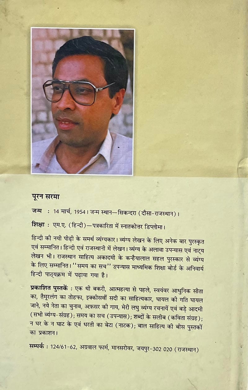 Bade Aadmi पूरन सरमा का व्यंग्य-संग्रह ‘बड़े आदमी’ विद्रूप चेहरों पर गहरी चोट करता है और उन विसंगतियों को उकेरता है जो हमारे परिवेश में रच-बस गई हैं। यह संग्रह मानवीय मुद्राओं को नई बुनघट से नये मुहावरे में गूँथता है, जिसमें बिखरते मूल्यों को सहेजने की सघन वकालत है। व्यंग्यों की शैली नूतन प्रयोगों के साथ उद्घाटित होती है, जिसमें कलात्मक अनुशासन और विनोद भाव दोनों प्रकट होते हैं।